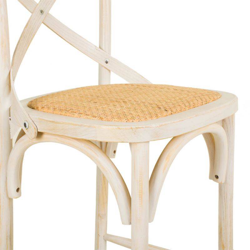Fabricado con madera de abedul con una solida estructura de 4 patas, arco de refuerzo, reposapies cuadrado, y asiento de rattan.