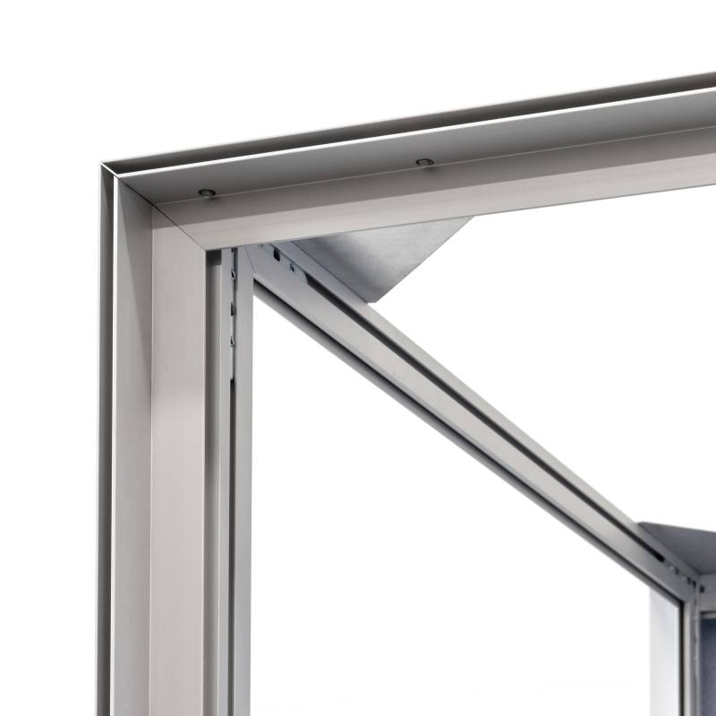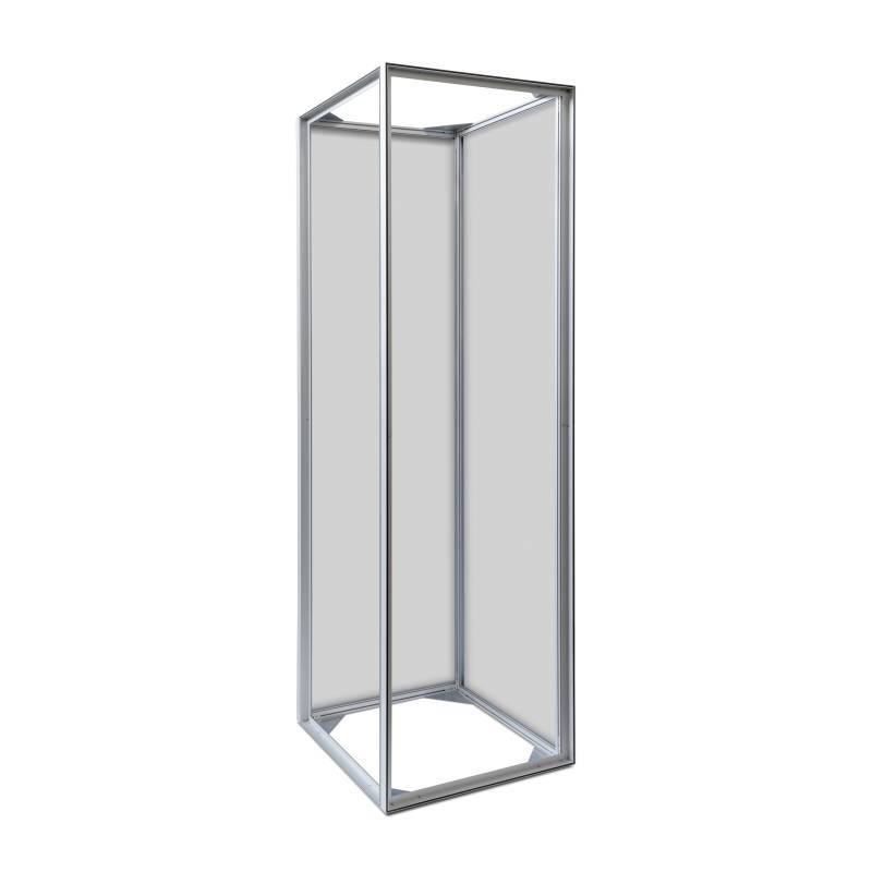 Expositor a cuatro caras, de estructura ligera pero robusta muestra su mensaje desde todos los ángulos.