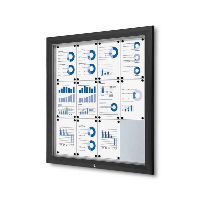 Vitrina o Tablón de Anuncios magnético para exterior negra con protección ignífuga para 12 hojas DIN A4.