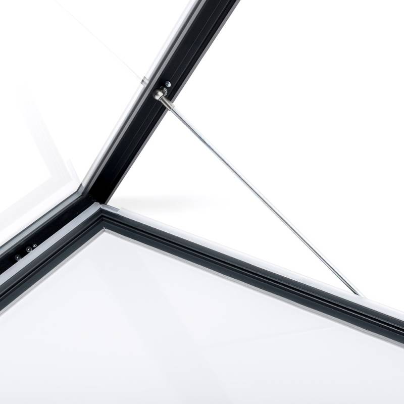 Diseñada para uso en exteriores, esta vitrina cuenta con una certificación IP56, lo que garantiza una resistencia total a la intemperie.