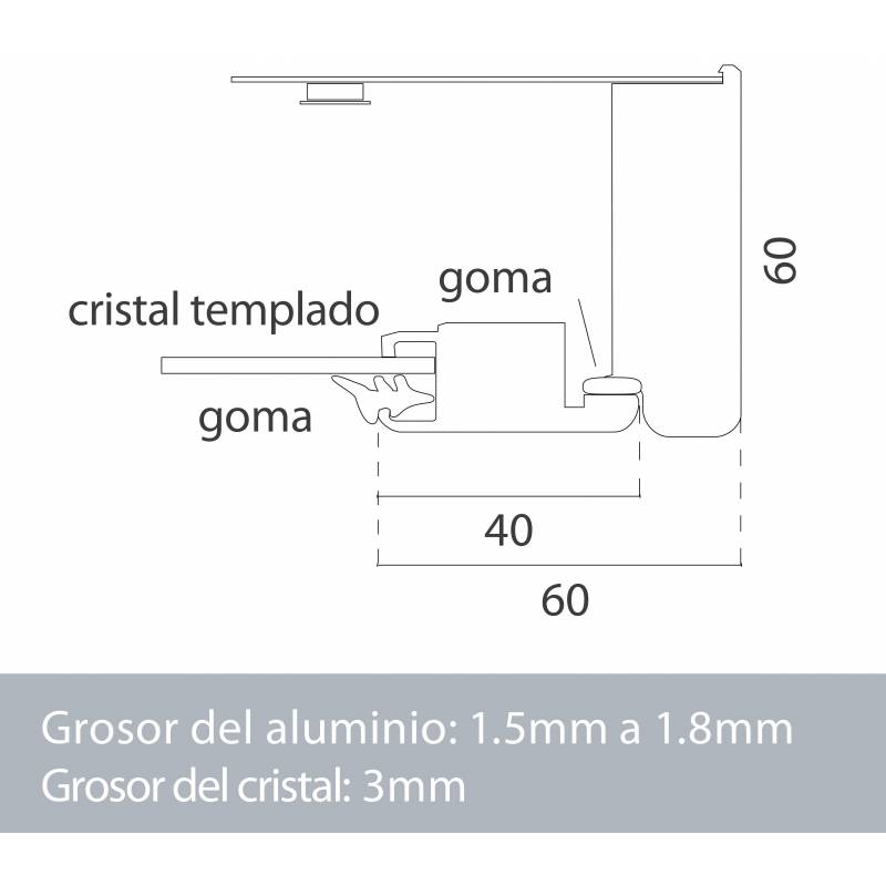 Marco de aluminio y cristal templado de 3mm de espesor.